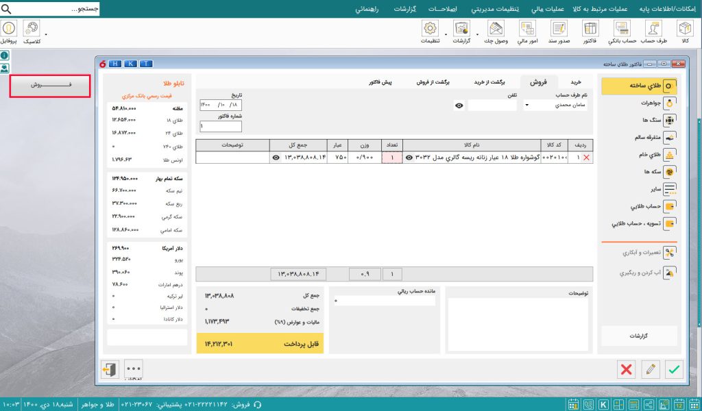 ویژگیهای برنامه بنکداری طلا و جواهر